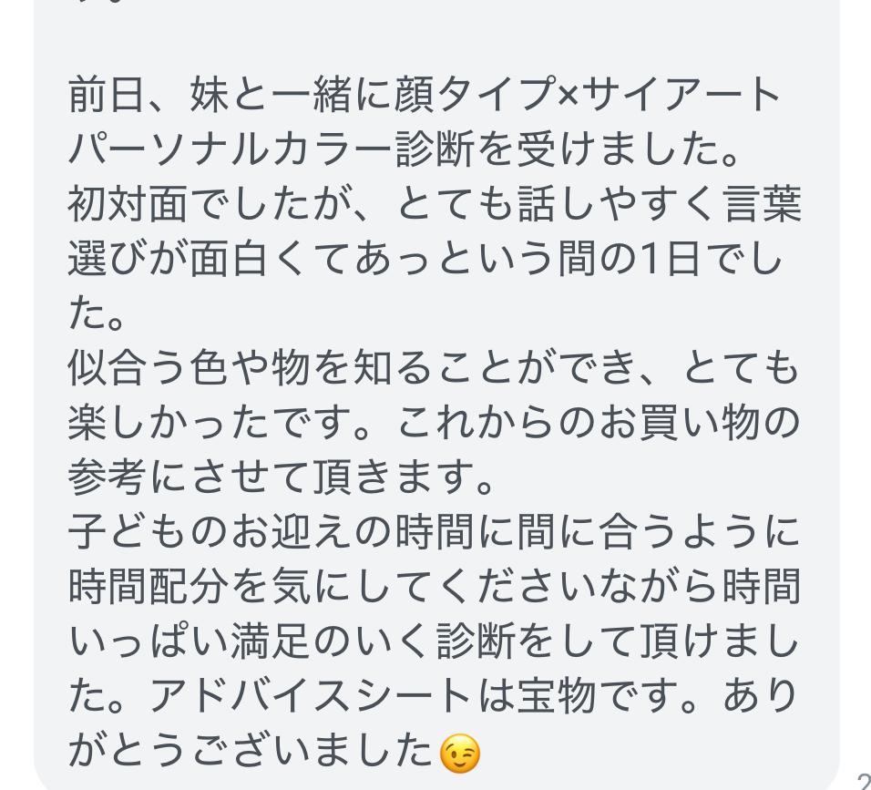 サイアートパーソナルカラー×顔タイプ診断のお客様